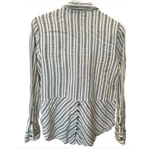 1️⃣ White & Black Striped Button‑Up Top – S • Long sleeve • Button‑up • Classic fit • Rayon/Cotton blend