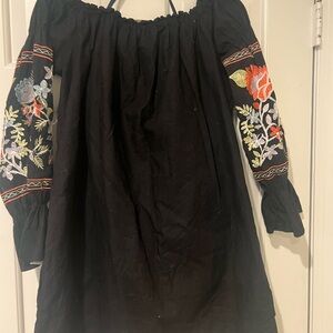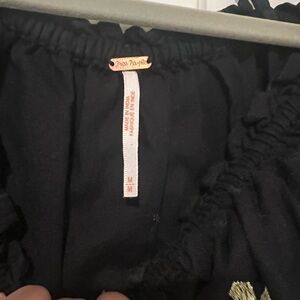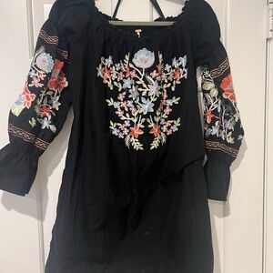 Free People Black Embroidered Floral Peasant Dress