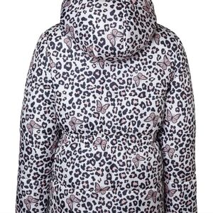 This hooded jacket from Wippette features a cheetah and butterfly print and a polar fleece lining, perfect for cold days.