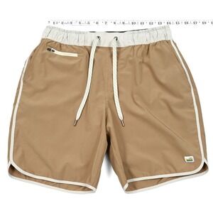 Vuori Banks Shorts Men's Medium Tan 7in Athletic Workout Drawstring V330 Pockets