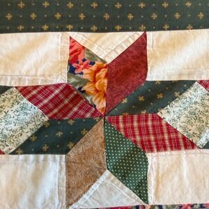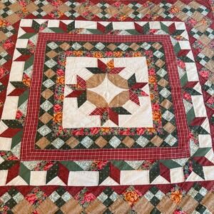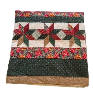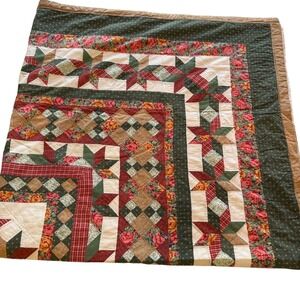 Handmade Patchwork Star Quilt Floral Plaid Country Farmhouse Green Red Tan 79x85