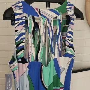 Vibrant multicolor dress featuring bold abstract swirls in green, blue, purple and white. beautiful design on back. 2 slits in front. stretchy. plus size 2x. NEW