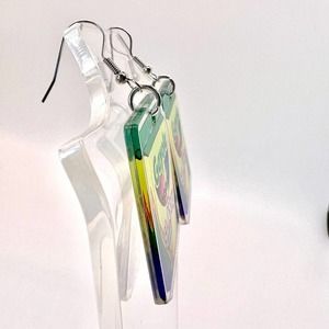 These earrings are made of acrylic with metal hooks.