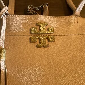 Tory Burch Light Blush Pebbled Leather Tassel Tote