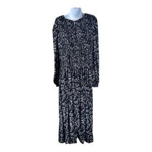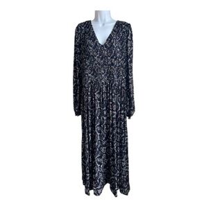 Madewell Navy Paisley V-Neck Long Sleeve Maxi Dress