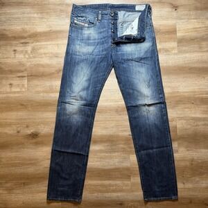Diesel Jogg Jeans Men 32 Blue Tepphar-NE Slim Carrot Stretch Distressed 0800E