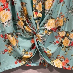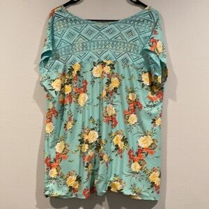 Bobbie Brooks Plus Size Blue Floral Twist Top with Lace on Back - Size 1X