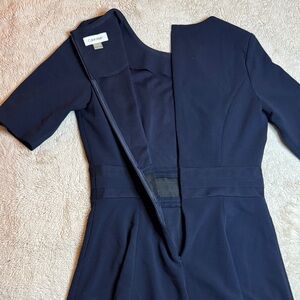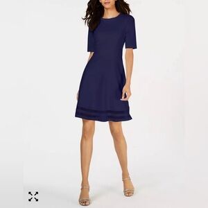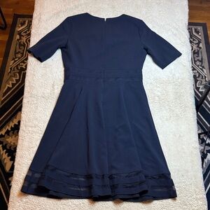 Calvin Klein Elegant Navy Midi Dress with mesh stripes sz 6