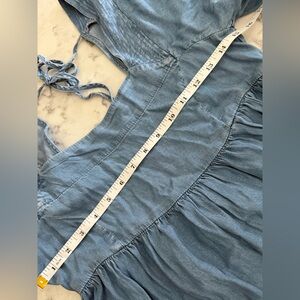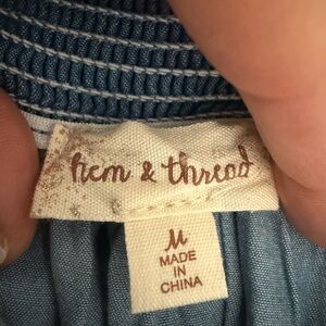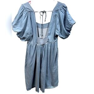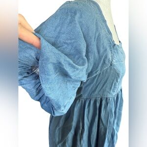 Hem & Thread Solid Blue Square Neck Babydoll Dress- Medium
