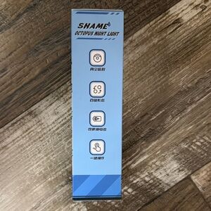 Cute cartoon-themed night light packaging. Predominant blue and white colors. Fun character artwork with playful design.