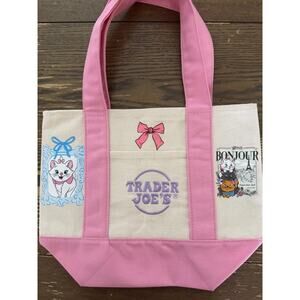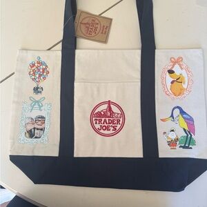 These are Custom Made Disney Themed Trader Joes Mini Tote Bags. Each bag is individually created and there is only one of each one. The art is created, then printed and transferred to the bags. Each Bag is one of a kind. The front has the designs and the back is just the regular trader joes logo, no characters.