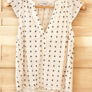 Beautiful Evereve Sophia textured ruffle top in excellent used condition. This feminine blouse features a textured fabric with soft ruffle details that add a polished, stylish touch. Perfect for dressing up denim or pairing with trousers for work or a night out.