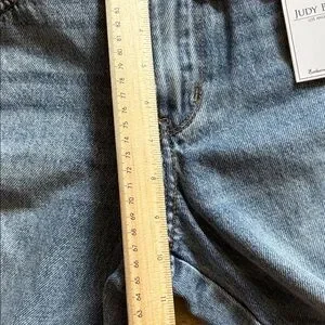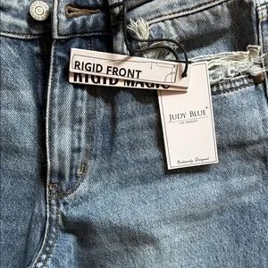 Judy Blue Distressed Straight Leg Jeans - Light Blue Rigid front