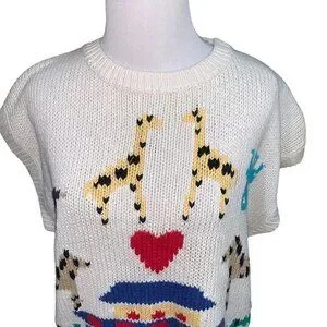 Vintage Jos. A. Bank Women's Sweater Vest in Size Large (please refer to the measurements to ensure fit, as Vintage Sizing runs smaller than today's Sizing. ) Hand knitted, off white with a Noah's Ark Scene on the chest. The fabric is a Ramie Cotton Blend. Great condition.