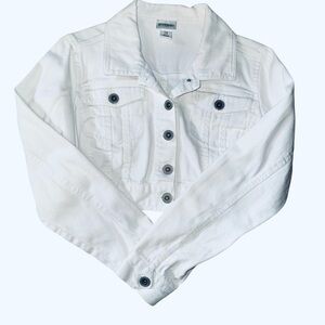 White Cropped Denim Jacket Motherhood Maternity Size M Button Front Stretch