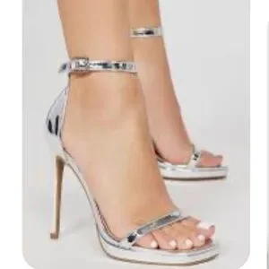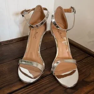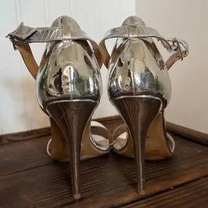 Elegant silver high heel sandals perfect for any occasion. Features a sleek design with a comfortable fit. Excellent condition women’s size 9
