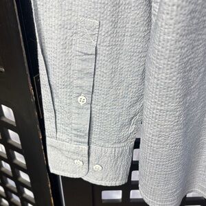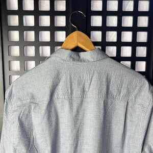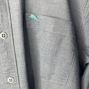 This versatile shirt blends relaxed island style with everyday wearability. The lightweight chambray fabric gives it a soft denim-like look while remaining breathable and comfortable. All clothing is refreshed and from smoke/pet free non profit Thrift store. Fast shipping!! Bundle and save. Stylish light gray shirt with button-down design. Ideal for casual outings. Features subtle texture and classic collar.