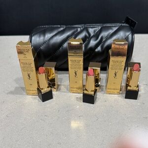 Glossy baby blue lipstick. Hydrating, vibrant color payoff. Classic black tube with gold trim and CC emblem. Elegant presentation for collectors or gifting.