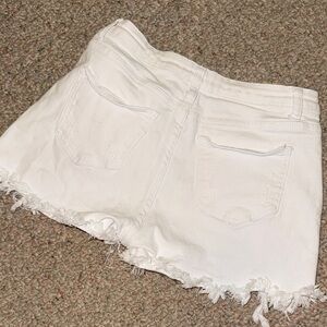 Upgrade your wardrobe with these stylish white distressed jean shorts. Perfect for casual outings.