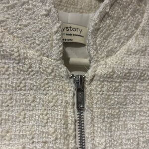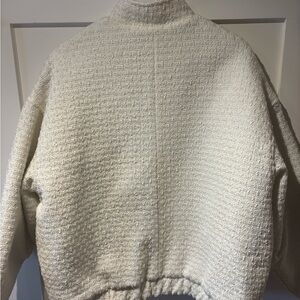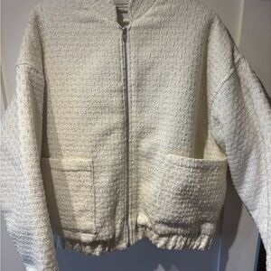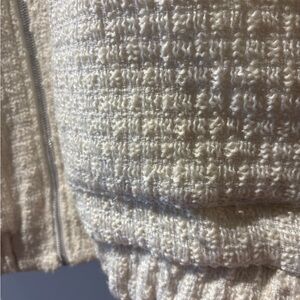 The fit: The Angela coat has the fit of a loose "bomber." Its elastic at the hips gives it a trendy and relaxed look. A highlight of this beauty: THE POCKETS. This coat features patch pockets, as well as side seam pockets for slipping your hands in. The silver zipper and tweed fabric add a nice little touch to your Daily style. And if you're still not convinced, it's lined!! What more could you ask for?