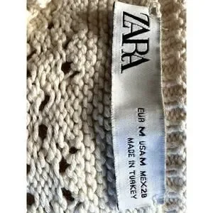 This Zara ivory open knit crop sweater is in good used condition, free from stains or rips. It's a stylish and comfortable piece that's perfect for layering or wearing on its own.