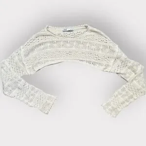Zara Ivory Open Knit Crop Sweater W. Long Sleeves Size M