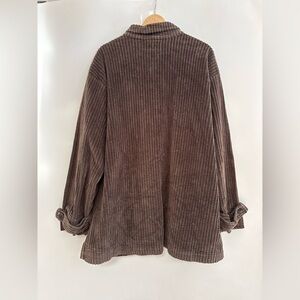 Super comfy brown corduroy button up jacket with front pockets. Size large. About 26 inches from pit to pit laying flat. About 31 inches long. Excellent condition with no defects.