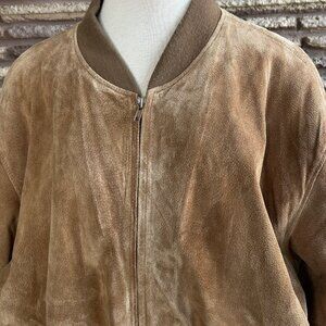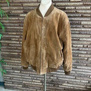 Vintage Reed Sportswear Brown Suede Leather Bomber Baseball Jacket Size XXL