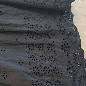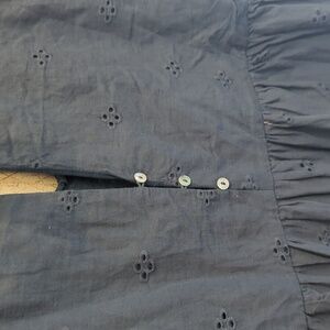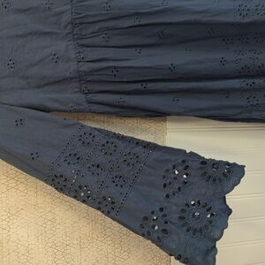 Suzanne Betro Navy Eyelet Empire Waist Dress, Bell Sleeves, Cotton, Navy, Medium
