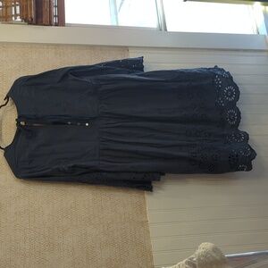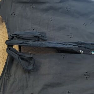 This dress is a gorgeous dusty blue color. The eyelet trim and 3/4 flared bell sleeves make it the perfect transitional dress for spring!