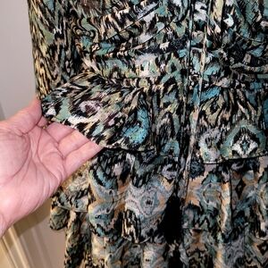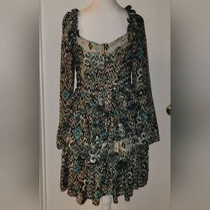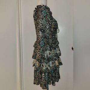 Elevate your wardrobe with this gorgeous Miss Me Womens Print Ruffle Dress. This dress features neck tied straps and is perfect for any occasion. The unique print and ruffle details make it a standout piece that will turn heads. Despite being used, this dress is in great condition and ready to be worn and loved by its new owner. Don't miss out on the opportunity to add this stylish and trendy dress to your collection. Grab it now before it's gone!