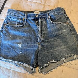 Stylish denim shirt dress with button-up front. Features chest pockets and rolled sleeves.