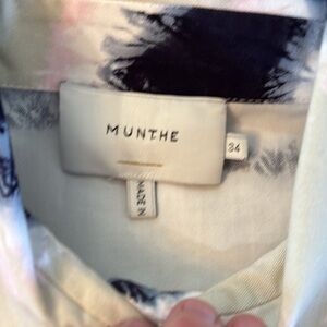 The classic button-front closure and traditional collar provide an Old Money structure, while the vibrant colors add a Whimsical flair. Whether styled tucked into trousers for Parisian Chic or worn loose for a Coastal weekend, this shirt is a versatile Vacation-Core essential. In Excellent Preowned Condition (EUC), this piece reflects Munthe's commitment to high-quality, creative fashion.