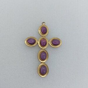 Vintage Gold Tone Amethyst Necklace 2" Cross Pendant