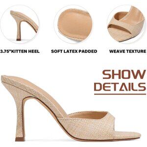 Women's Apricot Slip On Kitten Mule Slides Woven Heels Rubber Sandals Dress