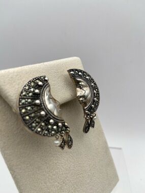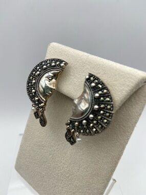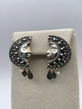 Vintage Suspicion Marcasite Sterling Silver Moon Goddess Earrings Pierced