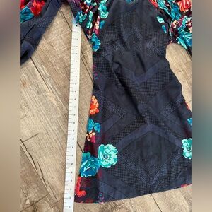 Womens Floral Mini Dress Small | Navy Balloon Sleeve Dress | Tie Back
