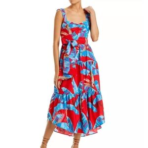 NWOT FARM RIO SWEET JUNGLE COTTON MIDI DRESS. SZ:M