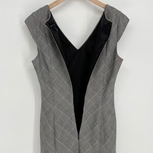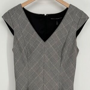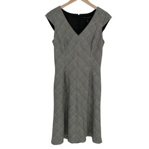 White House Black Market Womens Fit & Flare Cap Sleeve Dress Size 6 Black Plaid