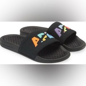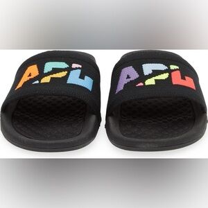 APL TechLoom Knit Sport Slides Black Multicolor Big Logo comfy Sandals NIB 6