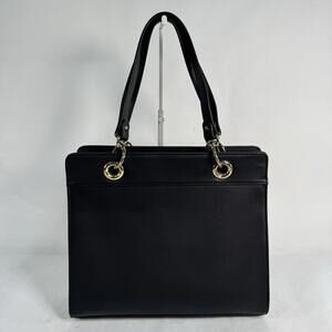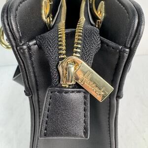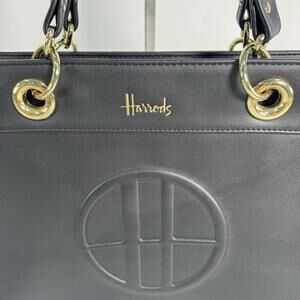 HARRODS LONDON Large Black Tote Shoulder Bag Gold Tone Hardware