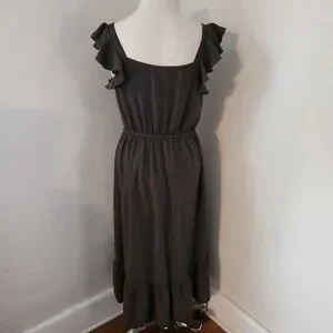 Indigo Rose Olive Green Ruffle Flutter Sleeve Button Front Midi Dress Large L