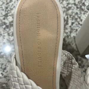 Chic woven double-strap slide sandals in white. Features soft braided straps for a secure, comfortable fit. Cushioned footbed adds everyday comfort. Versatile white color pairs easily with many outfits.