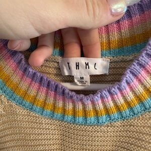 Vibrant halter top with multicolor stripes. Features pink, orange, blue, and white. Perfect for casual wear. EUC - worn once
