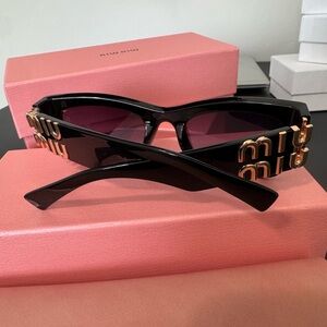 Miu Miu Glossy Black Sunglasses with Gradient Purple Lenses