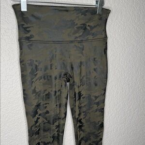 SPANX Faux Leather Green Camo Leggings Medium