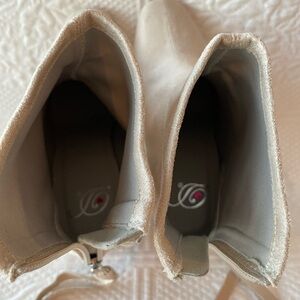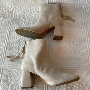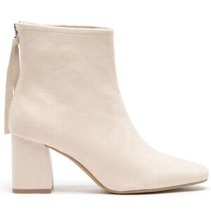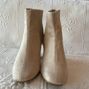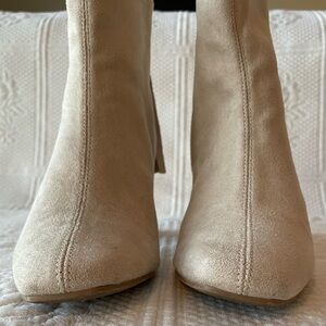 Delicious Faux Suede Square Toe Block Heel Ankle Boots Cream/Nude/Beige