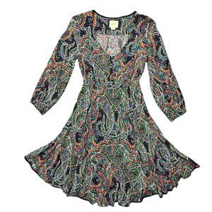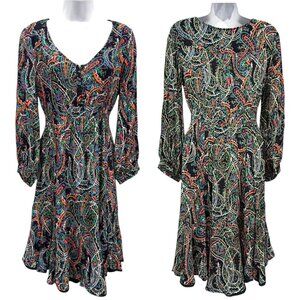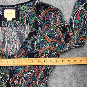 Maeve Anthropologie Boho Paisley Dress Flowy Long Sleeve Navy/Multicolor Size S