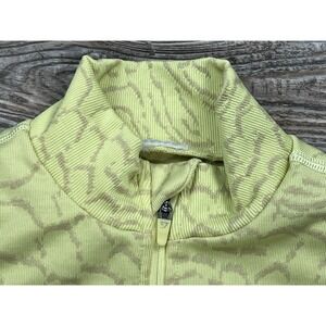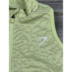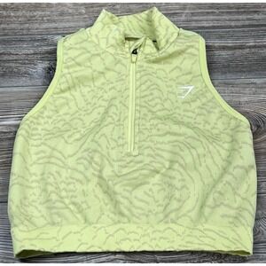 Gymshark Women's ADAPT ANIMAL SEAMLESS CROP TOP 1/2 ZIP Yellow Size S. The size tag has been removed, but this was my daughters top and she said it was a size small. There are measurements in the photos to determine fit.