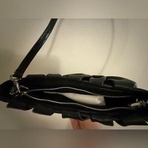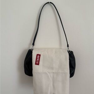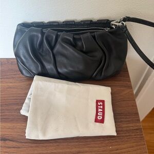 This is a staud bean bag in black leather with silver hardware. Only worn a few times. No signs of wear. Includes dust bag. From a smoke free and pet free home.